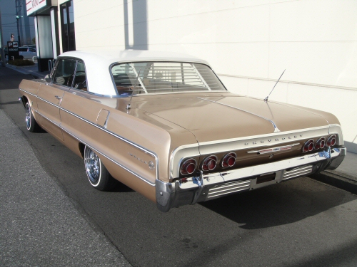 EXT/シャンパンゴールド INT/タン E/G 283 AT PG ハイドロ歴無し ファクトリーA/C付車(A/Cは効きません) 13インチワイヤーホイル ドアエッジガード ※ 希少ハイドロ歴無しのオリジナルコンディションの64インパラクーペです 内装 シート 天井 ドアパネルなどは張り替えたばかりなのか殆どNEWに近い状態です 外装のやれはあるもののベースとしてのコンディションはなかなか良いボディーです 8ナンバー登録出来ます